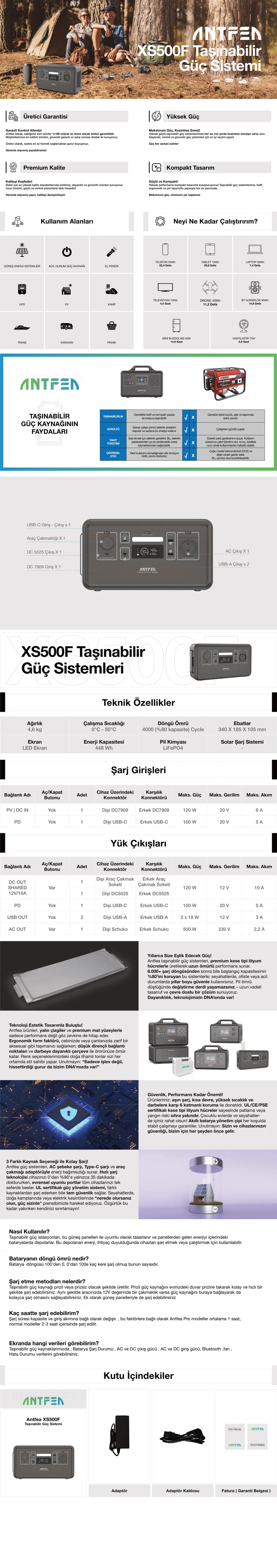 Antfea XS500F taşınabilir güç sistemi;